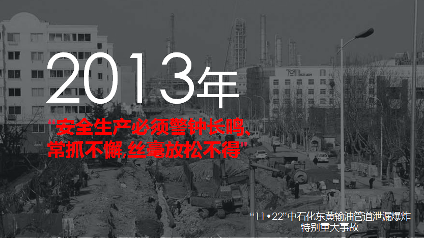 ——2013年11月24日,在考察“11·22”中石化東黃輸油管道泄漏爆炸特別重大事故搶險工作時強調(diào)