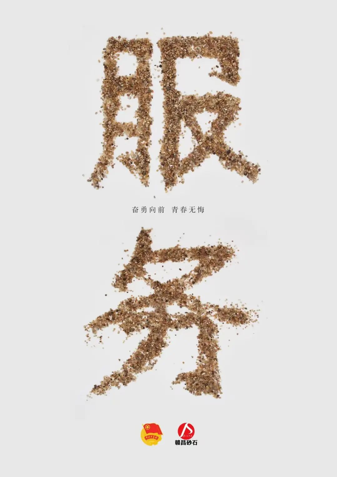 作品解讀:“青春夢想 服務(wù)人民”系列作品是使用贛昌砂石公司四種不同的砂石衍生產(chǎn)品,組成文字,蘊含著砂石公司砂石產(chǎn)品始終堅持服務(wù)為民的宗旨,也蘊含著年輕的砂石公司為了發(fā)展的砂石夢想。