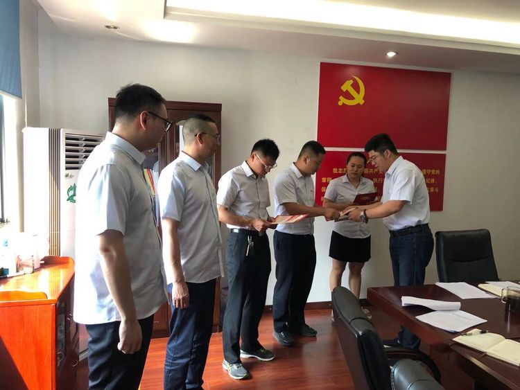 隨后,為喚醒黨員入黨初心,引導(dǎo)黨員時(shí)刻不忘自己的“第一身份”,充分發(fā)揮黨員先鋒模范作用,黨支部組織全體黨員面對(duì)黨旗,舉起右拳,用鏗鏘有力的話語(yǔ)重溫了入黨誓詞,同時(shí)為6月份過(guò)政治生日的六名同志分別贈(zèng)送了政治生日賀卡。