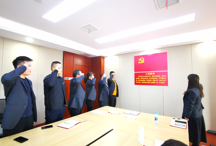 最后,機(jī)關(guān)黨支部組織11月新接收的兩名預(yù)備黨員舉行了入黨宣誓儀式。作為預(yù)備黨員,他們面對鮮艷的黨旗,高舉右手,向黨莊嚴(yán)宣誓。一字一句,神圣而豪邁;錚錚誓言,體現(xiàn)了對中國共產(chǎn)黨的無限忠誠。