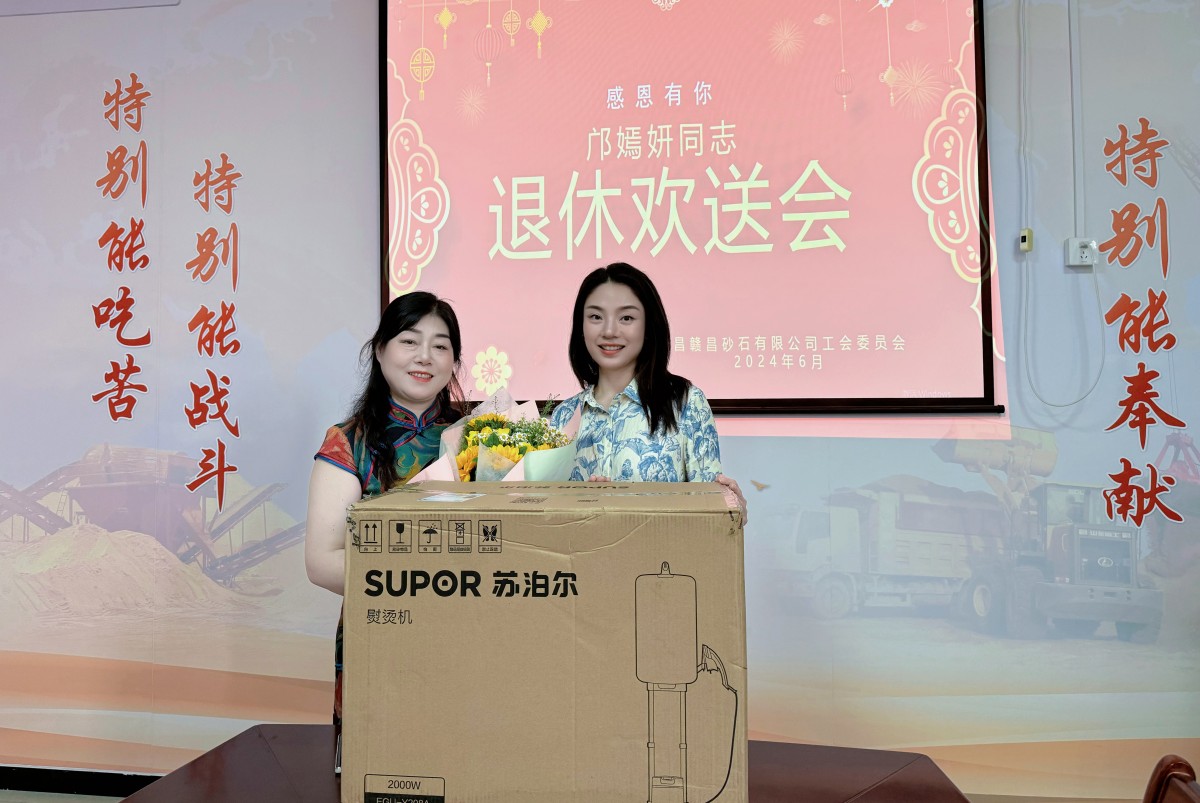 2024年6月27日下午,南昌贛昌砂石有限公司工會聯(lián)合高新銷售中心全體員工,在高新銷售中心舉辦了一場溫馨而隆重的退休歡送會,以表達對即將退休的鄺嫣妍同志的敬意和祝福。