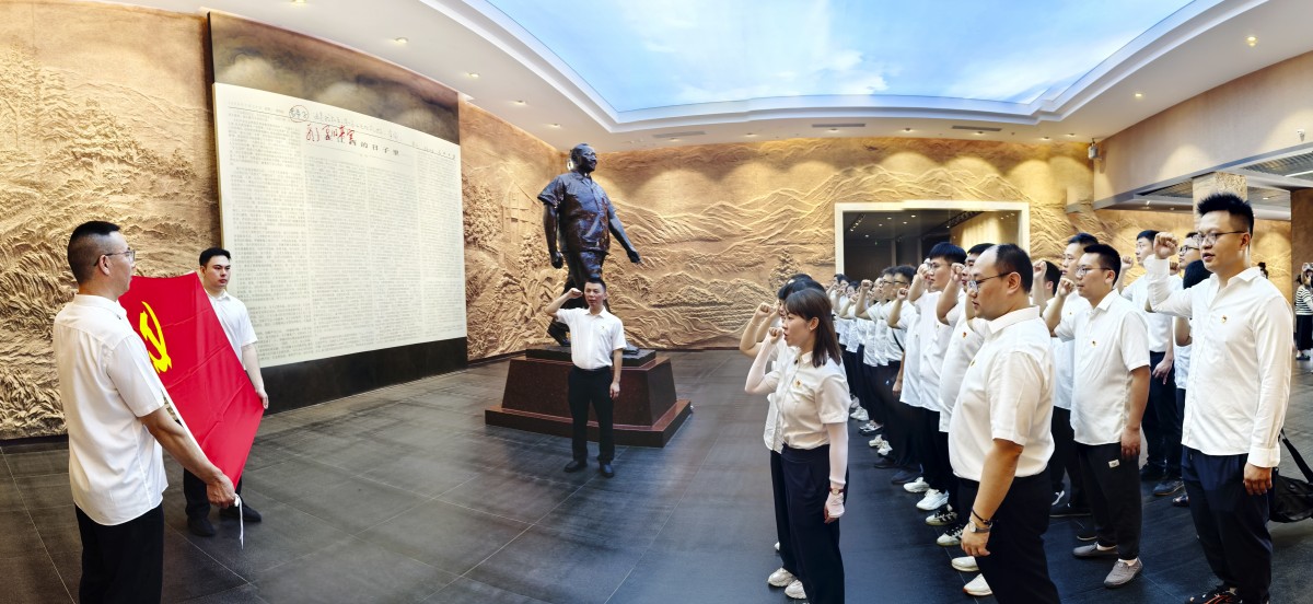 在莊嚴(yán)的黨旗下、在鄧小平塑像前,全體黨員在黨委委員、紀(jì)委書記王洪浩同志的帶領(lǐng)下莊嚴(yán)肅立,高舉右拳,鏗鏘有力地重溫入黨誓詞,提醒自己“不忘初心、牢記使命”,永葆共產(chǎn)黨員的政治本色。