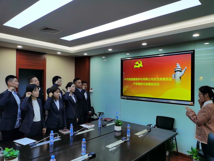 為增強(qiáng)新任中層干部勤政廉政意識,促進(jìn)干部擔(dān)當(dāng)履責(zé)。10月16日,南昌贛昌砂石有限公司黨總支部組織開展新任干部任前廉潔談話會。市政公用集團(tuán)黨委委員,贛昌砂石公司黨總支部書記、董事長劉順保,黨總支部委員、總經(jīng)理陳鴻,黨總支部副書記、常務(wù)副總經(jīng)理朱鳳,黨總支部委員、副總經(jīng)理張軍茂,集團(tuán)派駐紀(jì)檢組第三組副組長熊建亮,公司黨總支部委員、總經(jīng)理助理蔡安煜與新提拔8名中層干部進(jìn)行廉潔從業(yè)談話。會議由機(jī)關(guān)黨支部書記、人力資源部負(fù)責(zé)人付文平主持。