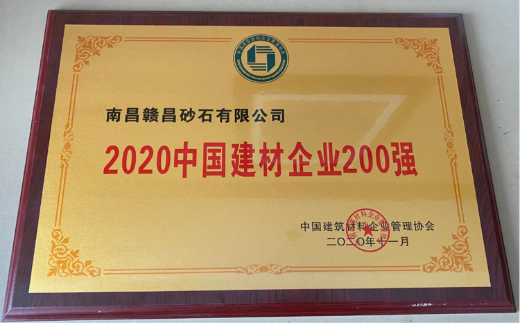 最后,中國建筑材料企業(yè)管理協(xié)會(huì)在大會(huì)上為2020年中國建材企業(yè)500強(qiáng)頒發(fā)獎(jiǎng)牌,南昌贛昌砂石有限公司作為500強(qiáng)企業(yè)前200名,特榮獲“2020中國建材企業(yè)200強(qiáng)”榮譽(yù)稱號。