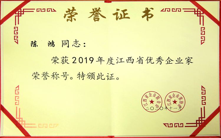 “2019年度江西省優(yōu)秀企業(yè)家”
