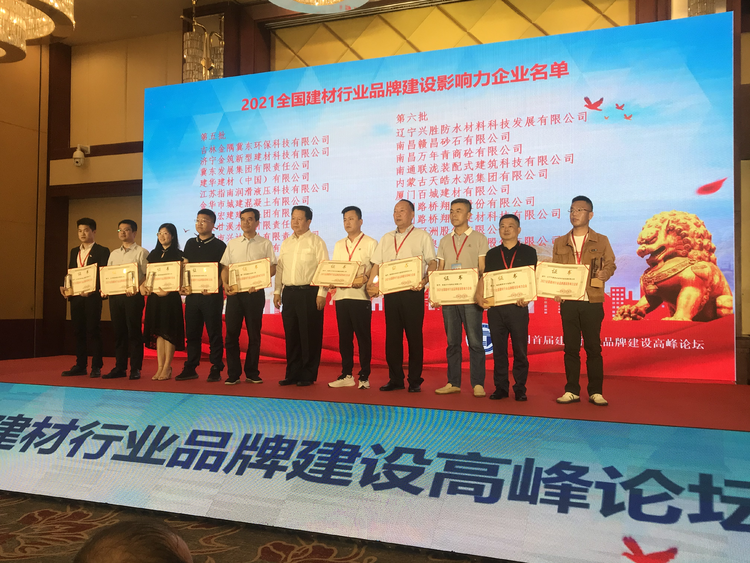 隨后,中國建筑材料企業(yè)管理協(xié)會(huì)、中國建筑材料企業(yè)管理協(xié)會(huì)品牌建設(shè)分會(huì)共同在大會(huì)上為“2021全國建材行業(yè)品牌建設(shè)影響力企業(yè)”頒發(fā)證書。南昌贛昌砂石有限公司有幸提名并成功獲得“2021全國建材行業(yè)品牌建設(shè)影響力企業(yè)”榮譽(yù)稱號(hào)。