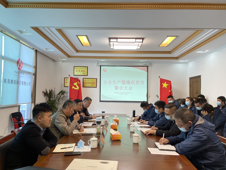 為進(jìn)一步加強(qiáng)安全生產(chǎn)及廉政教育工作,11月10日贛昌砂石公司進(jìn)賢縣分公司組織召開了安全生產(chǎn)暨廉政教育警示大會(huì),增強(qiáng)員工的安全生產(chǎn)意識(shí)及拒腐防變的能力,為公司穩(wěn)步發(fā)展提供堅(jiān)強(qiáng)有力的保證。贛昌砂石公司總經(jīng)理陳鴻、副總經(jīng)理劉捷、紀(jì)委副書記黃中堯出席會(huì)議,會(huì)議由總經(jīng)理助理蔡安煜主持。監(jiān)審部、安保部、市場部相關(guān)人員陪同,進(jìn)賢縣分公司中層干部班組及全體員工參加會(huì)議。