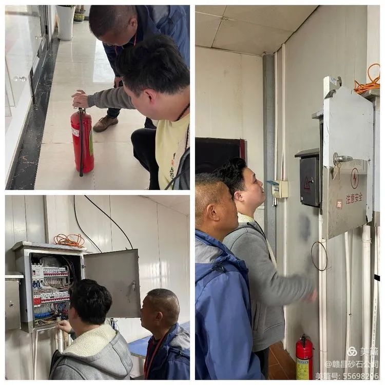 首先,砂場班組人員針對砂場道路照明及辦公區(qū)域所有的用電箱老化破損等情況進(jìn)行了隱患排查工作,并逐一檢查了辦公區(qū)域內(nèi)消防設(shè)施,對超出使用期限、破損的設(shè)施及時(shí)進(jìn)行更換處理。在檢查過程中,付軍再三叮囑要以預(yù)防為主,防消結(jié)合的安全意識,堅(jiān)持做好每日檢查,發(fā)現(xiàn)隱患問題及時(shí)整改到位。