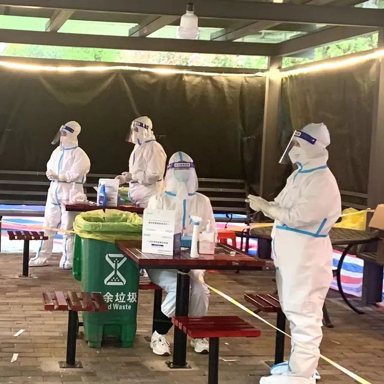我參與了社區(qū)第五輪和六輪全員核酸檢測工作,6點30分,我來到了核酸檢測現場和社區(qū)工作人員、醫(yī)務人員、以及志愿者們一起開始搭帳篷分發(fā)防疫物資,布置場地,擺放座椅,7點30分陸續(xù)有居民前來排隊做核酸,也開始正式進入工作狀態(tài),我的主要工作就是測量體溫和維持隊伍秩序,提醒大家不要扎堆、保持間距、不要插隊、做好個人防護措施、檢測前打開健康碼。