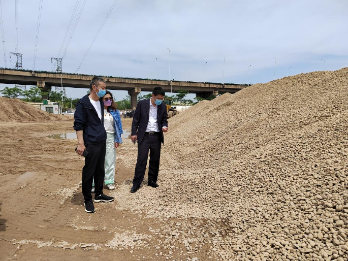 首先,劉順保一行來到經(jīng)開片區(qū)防汛囤砂點(diǎn)進(jìn)行實(shí)地考察,經(jīng)開片區(qū)負(fù)責(zé)人熊明對(duì)目前防汛礫石儲(chǔ)備情況進(jìn)行了簡要匯報(bào)。