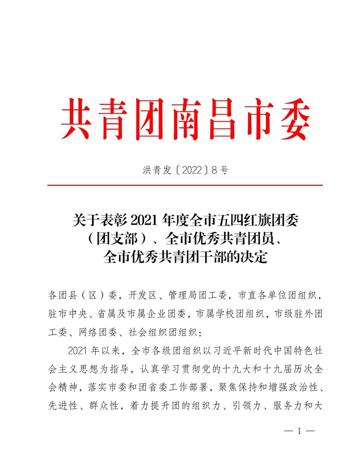 喜報(bào) | 贛昌砂石公司團(tuán)總支部書(shū)記胡雯君榮獲2021年度“全市優(yōu)秀共青團(tuán)干部”榮譽(yù)稱號(hào)
