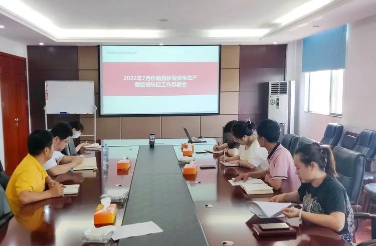 2022年7月12日上午,南昌贛昌砂??萍加邢薰菊匍_疫情防控工作部署會(huì)。會(huì)議由贛昌砂海公司總經(jīng)理助理鄧振遠(yuǎn)主持,各部門負(fù)責(zé)人參加,一線班長(zhǎng)通過視頻參加會(huì)議。