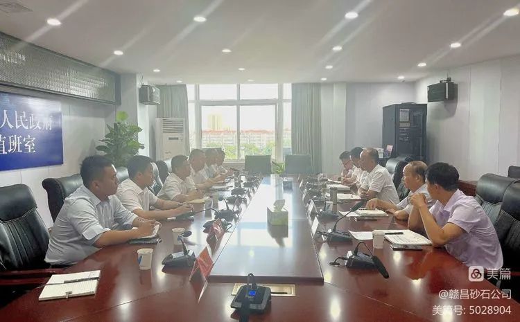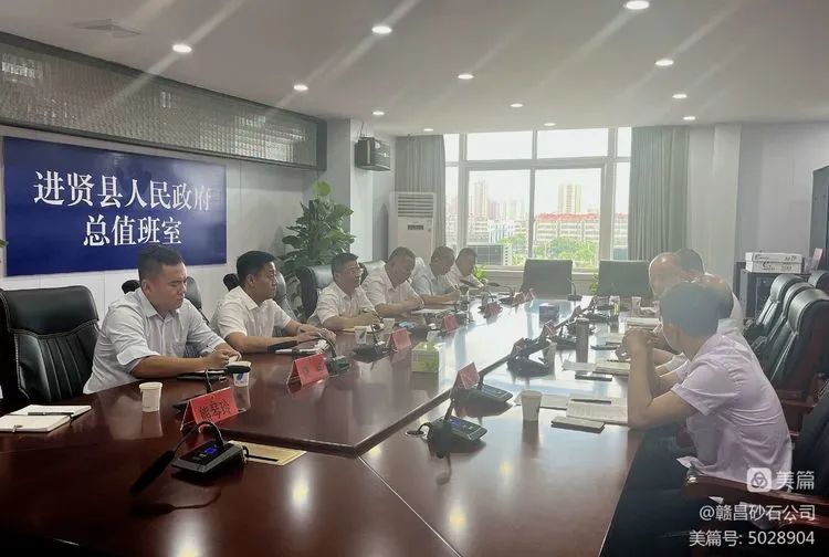 7月18日下午,南昌贛昌砂石有限公司總經(jīng)理陳鴻一行赴進(jìn)賢縣洽談采砂工作推進(jìn)事宜。公司總經(jīng)理助理蔡安煜及進(jìn)賢縣分公司、贛昌砂海子公司、財(cái)務(wù)部、企業(yè)管理部、配送服務(wù)中心相關(guān)人員一同前往。進(jìn)賢縣政府副縣長吳寬攜縣政府辦公室、縣商務(wù)局、縣水利局、縣自然資源局、縣創(chuàng)投集團(tuán)等有關(guān)同志熱情接洽并組織座談交流。