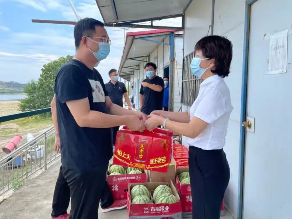 7月29日下午,贛昌砂石公司紀(jì)委書記萬愛梅前往南昌縣分公司劍霞砂場,為堅守在崗位的砂場員工送去綠豆、西瓜、涼茶等防暑降溫慰問物資。監(jiān)審部部長孫嘉冠,南昌縣分公司總經(jīng)理王勝、總經(jīng)理助理成俊及相關(guān)人員陪同。