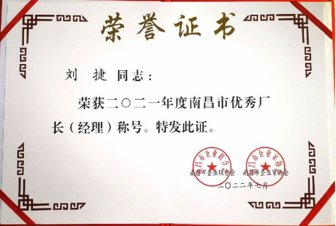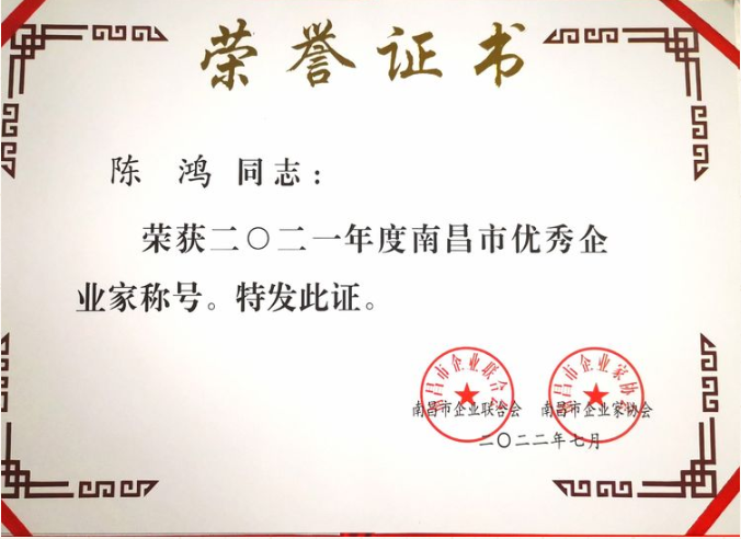 近日,南昌市企業(yè)聯合會、南昌市企業(yè)家協會聯合表彰了一批2021年度新時代南昌杰出企業(yè)家、優(yōu)秀企業(yè)、優(yōu)秀企業(yè)家、優(yōu)秀廠長(經理)、企聯系統(tǒng)先進集體、先進個人。