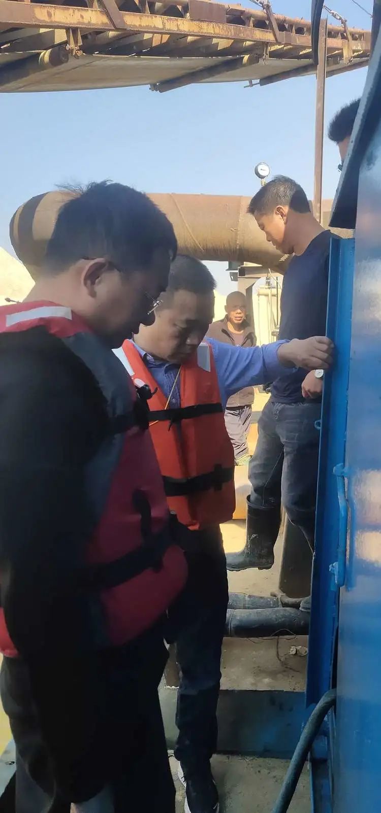 首先,檢查人員對(duì)采區(qū)的采挖設(shè)備進(jìn)行逐一上船檢查工作,對(duì)采挖設(shè)備、消防設(shè)備、救生設(shè)備及船只用電設(shè)施等進(jìn)行了詳細(xì)的檢查,并對(duì)相關(guān)人員展開了消防演練實(shí)操實(shí)訓(xùn)。