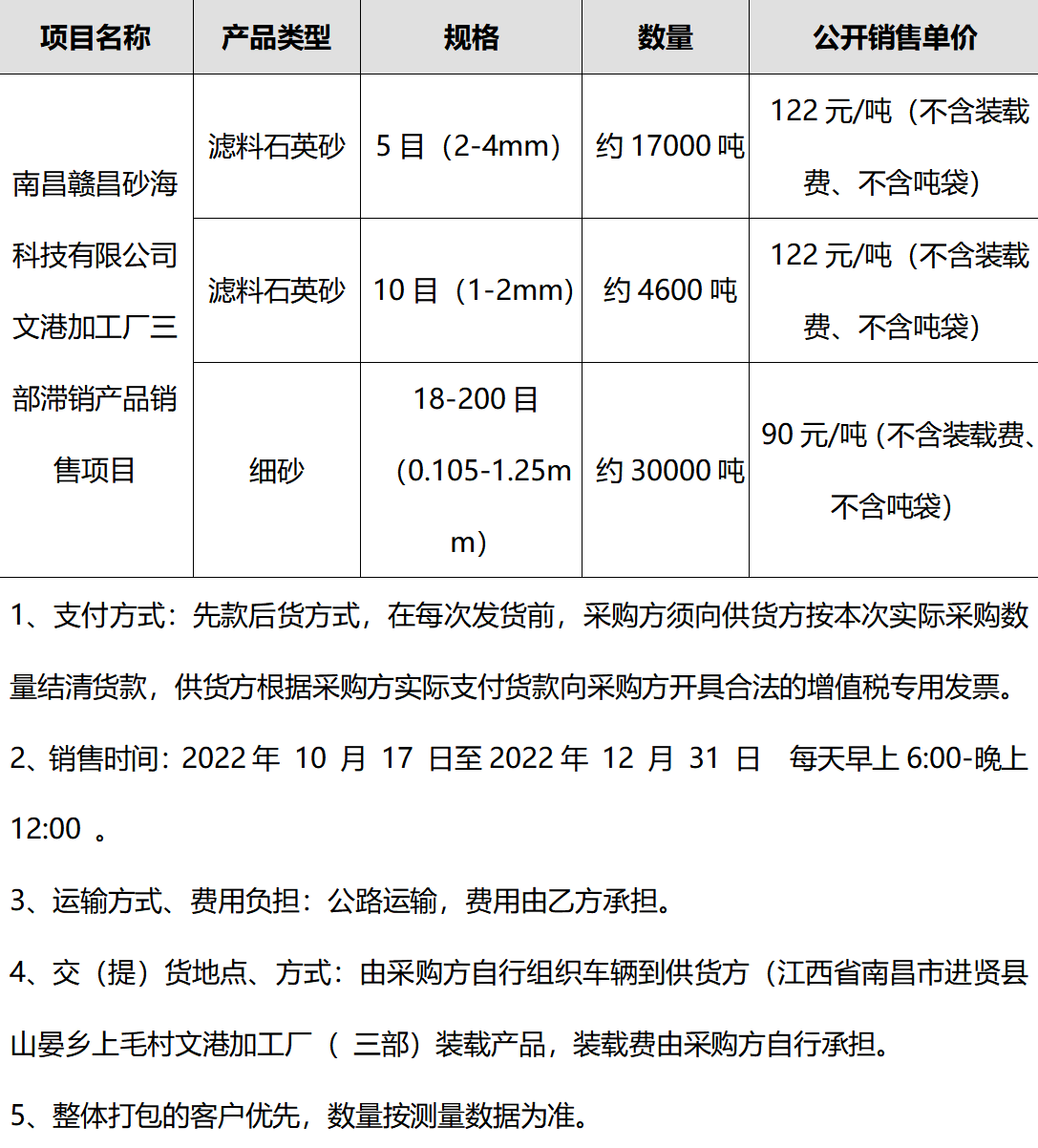 南昌贛昌砂??萍加邢薰緮M對文港加工廠三部滯銷產品采用公開銷售的的方式,現(xiàn)將公開銷售的有關情況公告如下:
