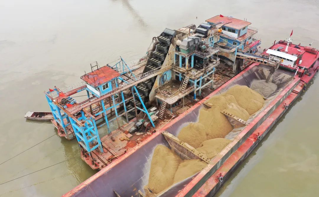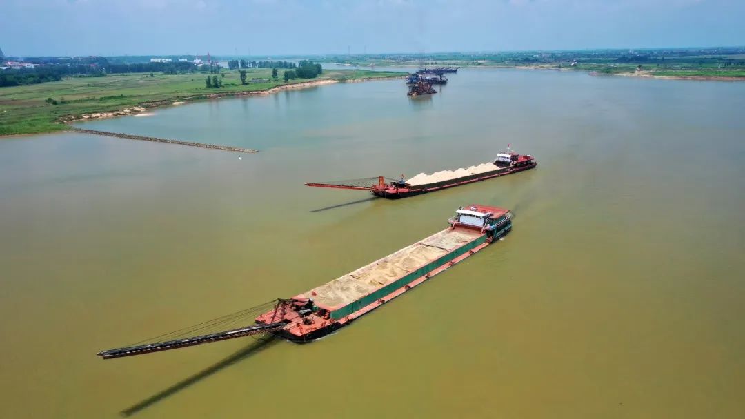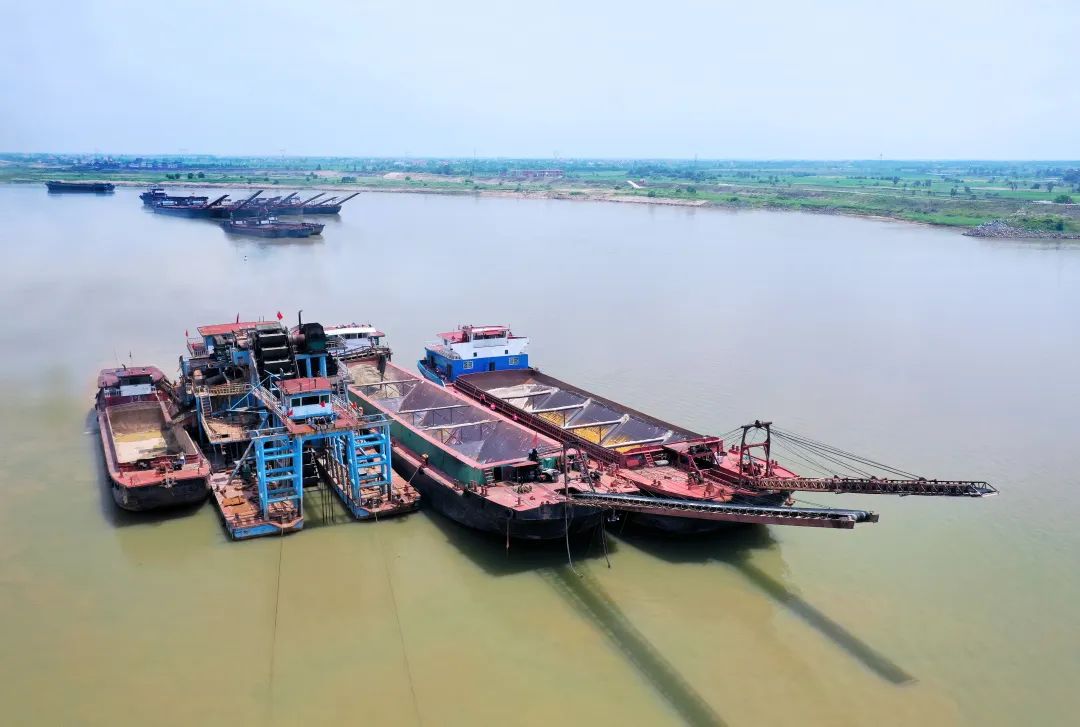 近期,贛撫尾閭綜合整治工程主支樞紐畫(huà)眉咀料場(chǎng)內(nèi),贛昌砂石公司采砂施工作業(yè)船只正在加緊生產(chǎn)中。