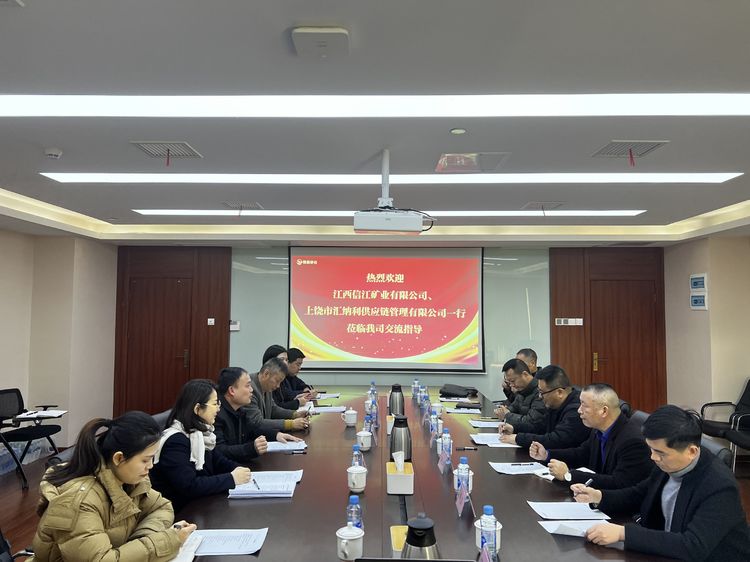 ? ? ?2月21日上午,江西信江礦業(yè)有限公司董事長(zhǎng)程繼豐、上饒市匯納利供應(yīng)鏈管理有限公司董事長(zhǎng)蔣義勝一行蒞臨贛昌砂石公司考察交流;贛昌砂石公司黨委副書記、總經(jīng)理李驍,黨委委員、副總經(jīng)理劉捷,副總經(jīng)理胡蓉,副總工程師、配送服務(wù)中心總經(jīng)理饒燕及相關(guān)部門人員陪同。