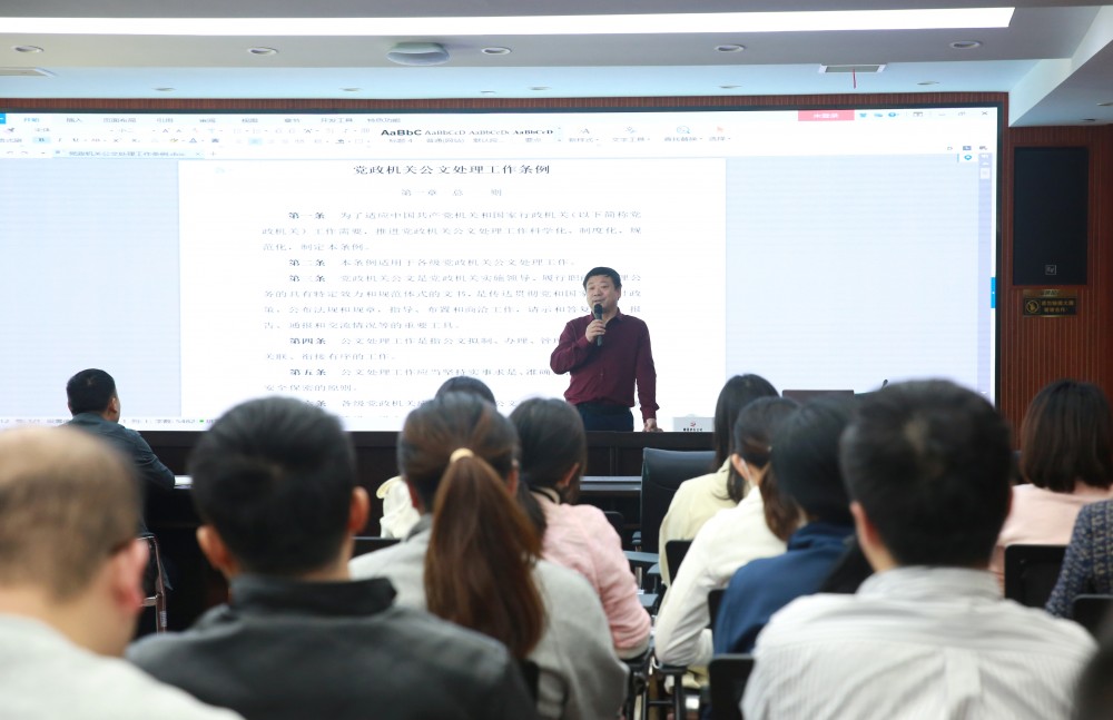 培訓(xùn)會(huì)上,李德平結(jié)合工作經(jīng)驗(yàn)和實(shí)際案例,從公文概述(定義、特點(diǎn)、作用、類(lèi)別)、公文寫(xiě)作程序、公文格式及行文規(guī)則、常用公文寫(xiě)作格式及方法、公文寫(xiě)作常見(jiàn)問(wèn)題五個(gè)方面進(jìn)行了全方位、系統(tǒng)性的交流闡述。講解方式深入淺出、生動(dòng)有趣,講解內(nèi)容全面客觀、實(shí)用性強(qiáng)。