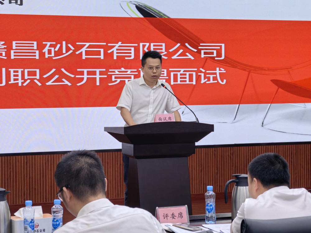 6月26日下午,在贛昌砂石公司本部舉行了公司各部門中層副職崗位公開競聘面試會。公司黨委書記、董事長唐曉飛,公司黨委副書記、總經(jīng)理李驍及公司全體班子成員,同時邀請交投總部人力資源部副部長熊瀟一同作為評委出席會議,公司紀(jì)委全程監(jiān)督。