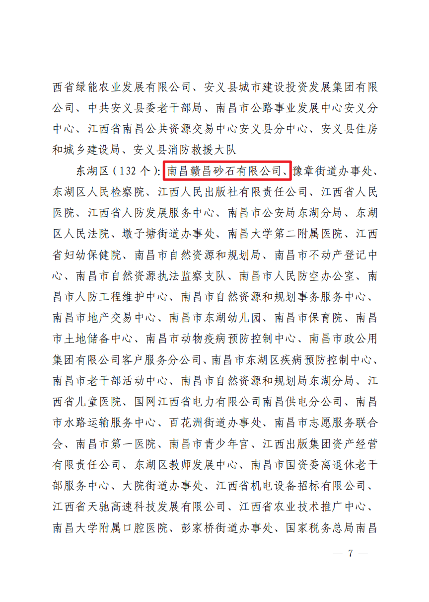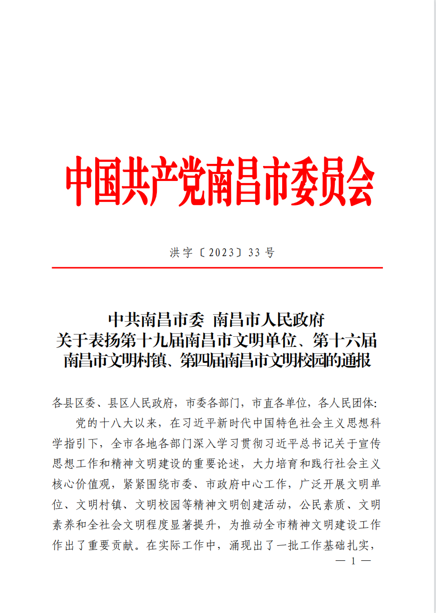近日,中共南昌市委、南昌市人民政府聯(lián)合印發(fā)《關(guān)于表揚(yáng)第十九屆南昌市文明單位、第十六屆南昌市文明村鎮(zhèn)、第四屆南昌市文明校園的通報(bào)》(洪字〔2023〕33號(hào)),南昌贛昌砂石有限公司被評(píng)為“第十九屆南昌市文明單位”。