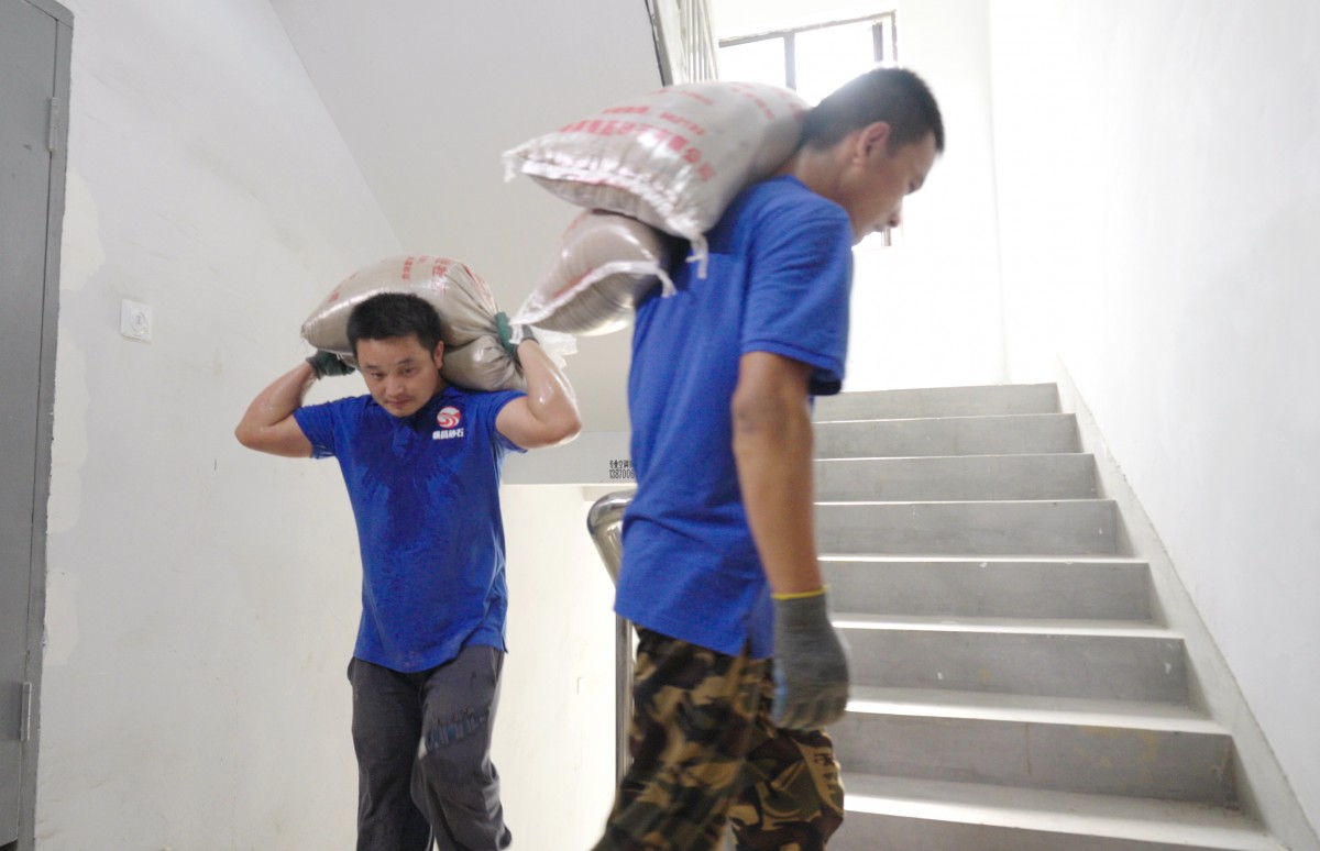 在生產(chǎn)、配送環(huán)節(jié),最辛苦的當(dāng)屬搬運(yùn)工師傅們,他們頭頂烈日將車上一袋袋砂石卸到手推車上,再拉進(jìn)電梯送上樓,按照客戶的要求卸在指定地點(diǎn),碰到樓梯房配送訂單,則完全要憑借一身體力將砂石一袋袋扛上樓,工作量瞬間要翻好幾十倍,彎腰、直腰、再?gòu)澭?、再直?..每天不知道要重復(fù)多少次枯燥而機(jī)械、卻又沉重而辛苦的卸貨動(dòng)作。工作期間,搬運(yùn)師傅都習(xí)慣帶上一塊毛巾放在身上,方便隨時(shí)擦汗,一天工作下來,汗水幾乎沒有停過,衣服也沒有干過。“做我們這行,辛苦是辛苦,但是這份工作總得有人做,家里小孩都在上學(xué),老人也要照顧,咬咬牙就堅(jiān)持下來了”,搬運(yùn)工師傅笑著說道,話語(yǔ)令人動(dòng)容,沒有豪言壯語(yǔ),沒有高談闊論,有的只是對(duì)家庭、對(duì)工作的無限責(zé)任感。