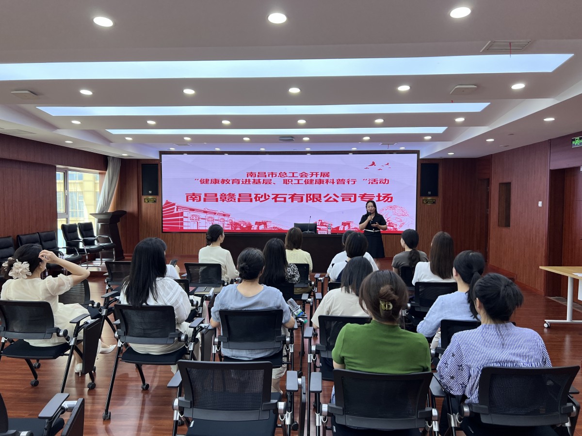 為進(jìn)一步關(guān)愛女性健康,更好地宣傳乳腺癌防治知識(shí),傳播“早發(fā)現(xiàn)、早診斷、早治療”的理念,在南昌市總工會(huì)的號(hào)召下,8月18日,贛昌砂石公司黨委、工會(huì)、團(tuán)總支組織開展“防微杜漸、早檢早篩”——關(guān)愛乳腺健康講座。特邀南昌市人民醫(yī)院(原南昌市第三醫(yī)院)乳腺科鄒玉峰博士進(jìn)行專題授課,公司30余名女職工參加。