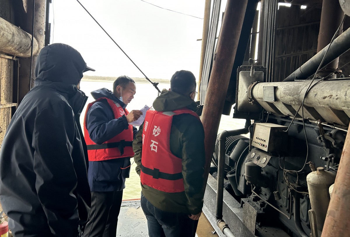 為全面掌握采砂船舶(機具)管理和船證信息,進一步加強采砂船數(shù)量及分布情況,12月15日,南昌市水利局法規(guī)科科長付建國、高工鄒節(jié)慶,市交通局港航大隊船舶檢驗科副科長占淼,市采砂辦督察部部長熊長清,市水政支隊河道大隊長王偉一行在贛昌砂石公司副總經(jīng)理張軍茂及前期部、開采管理中心相關(guān)人員的陪同下對贛江流域采砂船舶(機具)進行實地摸底核查。