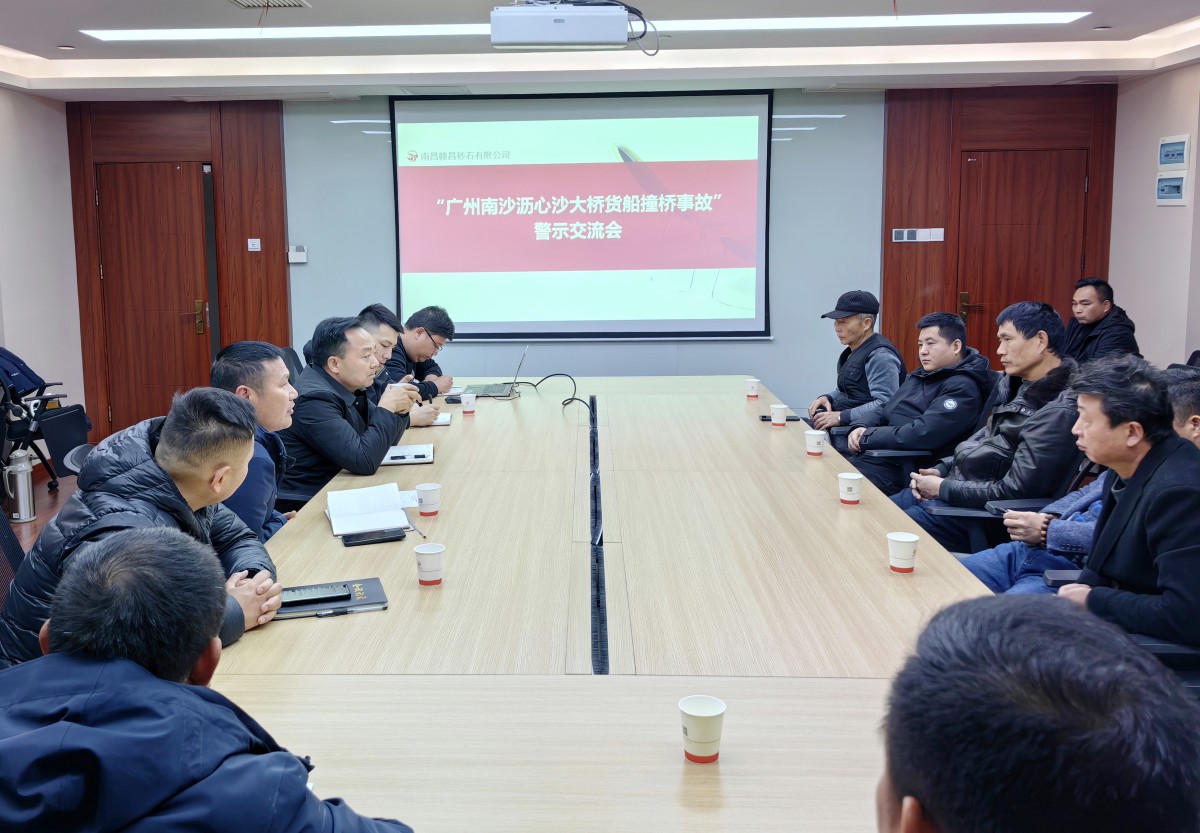 2024年2月23日上午,贛昌砂石公司組織召開廣州南沙“船撞橋”事故警示交流會。贛昌砂石公司副總經(jīng)理張軍茂、開采管理中心負(fù)責(zé)人鐘華,各航運(yùn)公司、運(yùn)輸船只代表參加會議。