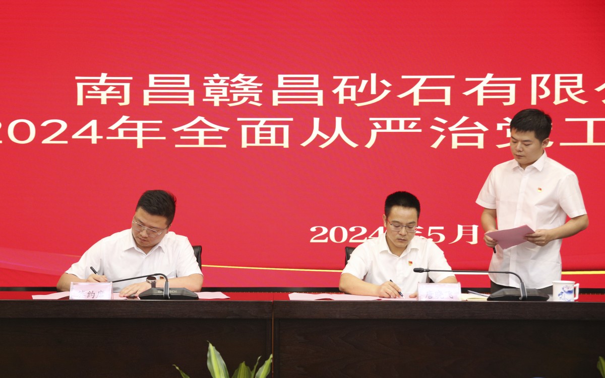 會上,公司黨委書記、董事長唐曉飛與公司黨支部書記代表、負責(zé)人代表分別簽訂了《南昌贛昌砂石有限公司2024年全面從嚴(yán)治黨主體責(zé)任書》《南昌贛昌砂石有限公司2024年黨風(fēng)廉政建設(shè)目標(biāo)責(zé)任書》。