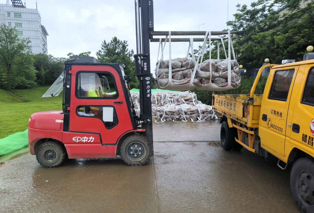 隨著贛江水位持續(xù)上漲,經(jīng)開區(qū)配送站現(xiàn)場被淹沒,無法正常生產(chǎn)作業(yè),結合往年經(jīng)驗,贛昌砂石公司配送惠民中心負責人熊明提前部署,在汛期前組織站點人員加班加點將砂石裝袋,并轉運至地勢高處進行儲備,為汛期砂石配送工作不中斷提供了保障。