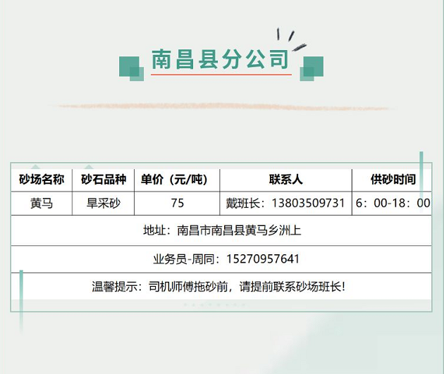 贛昌砂石公司砂石零售動態(tài)信息