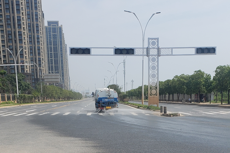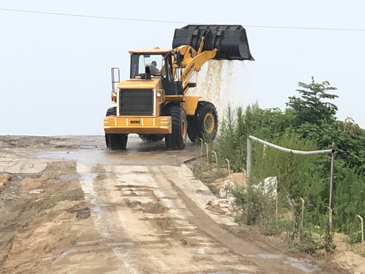 為加大降塵力度,同時清理場地內(nèi)積水,清湖砂場還特意安排鏟車鏟水到砂場進(jìn)場道路進(jìn)行降塵作業(yè),鏟車鏟水量大,單次灑水量充足,對于砂場日常道路揚塵抑制能夠起到立竿見影的效果。