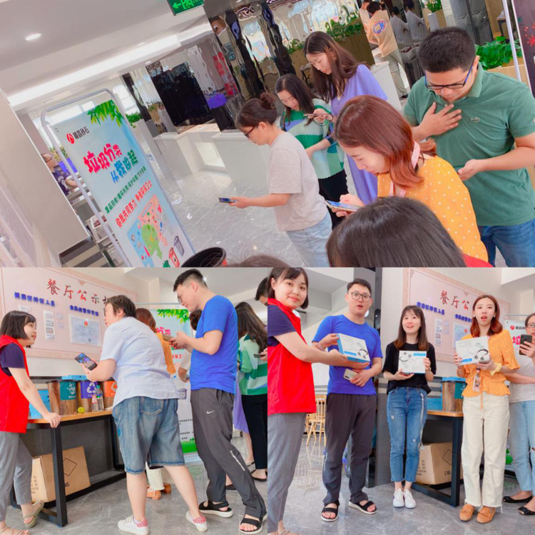 垃圾分類志愿者們以現(xiàn)場(chǎng)實(shí)物分類的形式并結(jié)合垃圾分類圖解的展板,生動(dòng)詳細(xì)地講解了日常生活垃圾應(yīng)如何分類及處理,同時(shí)組織現(xiàn)場(chǎng)多名員工掃碼參與了生活垃圾分類有獎(jiǎng)問答活動(dòng),并發(fā)放獎(jiǎng)品。